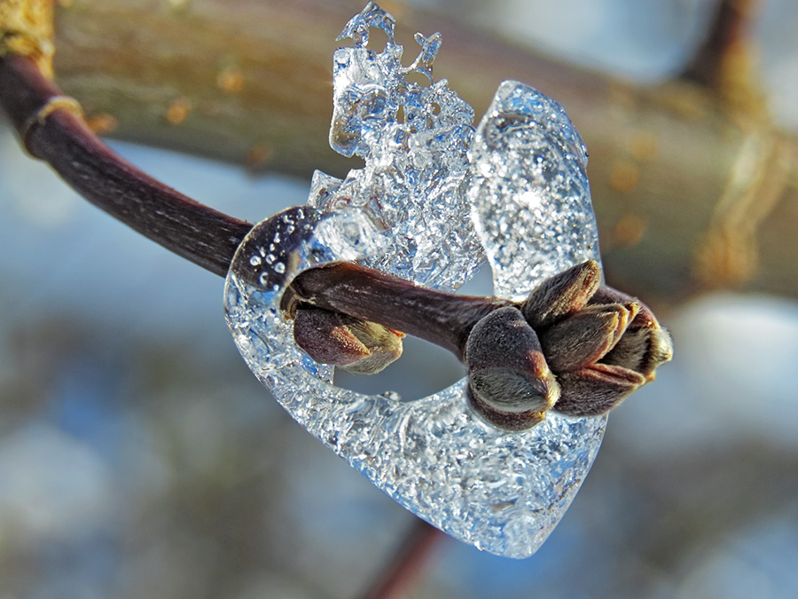 веточках клёна, ещё скованных зимней стужей, уже по-весеннему набухают почки, как бы говоря нам, что не вечна власть
