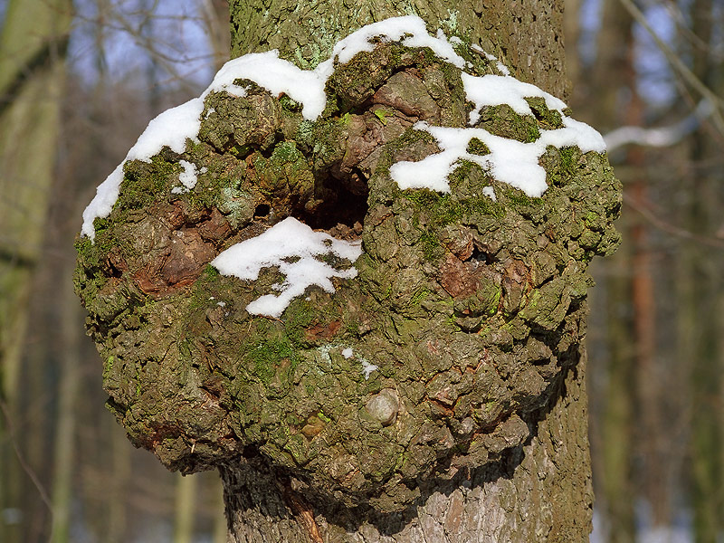 Комментарий. Причудливый нарост на стволе липы в Измайловском парке. В центре заметно углубление, возможно даже дупло. А, может быть, это гнездо лешего или другого таинственного существа, скрытого от глаз человеческих?