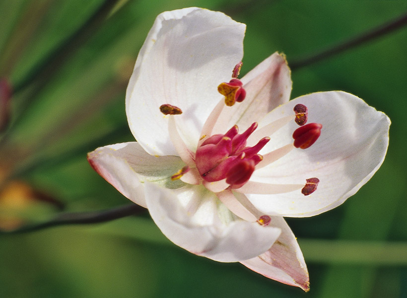 Комментарий. Цветок сусака зонтичного (Butomus umbellatus L.) у берега небольшого озерца в Виноградовской пойме.