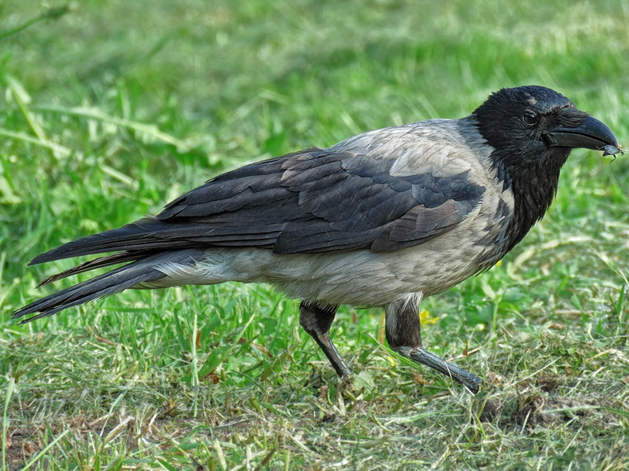 И всё же... Внимание моё привлекает серая ворона (Corvus cornix), что-то разыскивающая в пожухших обрубках стеблей. Обычно