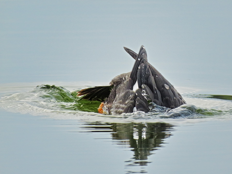 И пока селезень раздувал щёки и тянул шею, пытаясь привлечь внимание подруги, уточка занималась добычей пропитания,