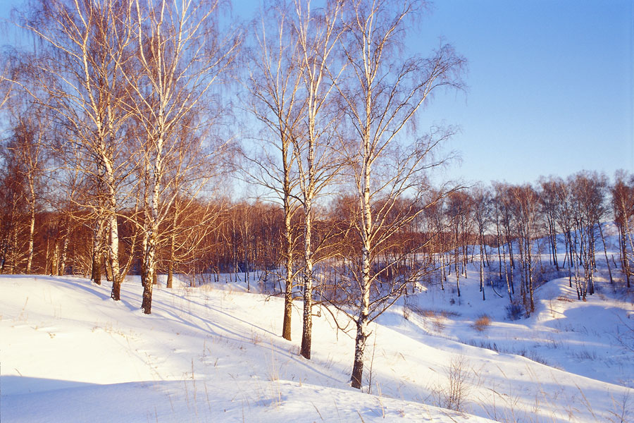удивительное очарование. Особенно прекрасны берёзовые рощи, которые окрашиваются перед закатом
