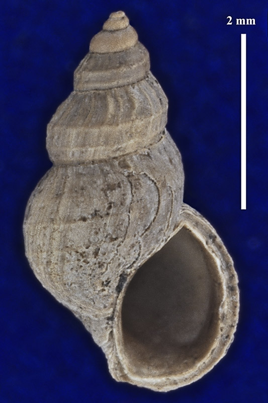 Размеры. Высота раковины около 4,35 мм. Длина масштабного отрезка равна 2 мм.