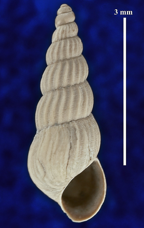 Размеры. Высота раковины около 4,45 мм. Длина масштабного отрезка равна 3 мм.