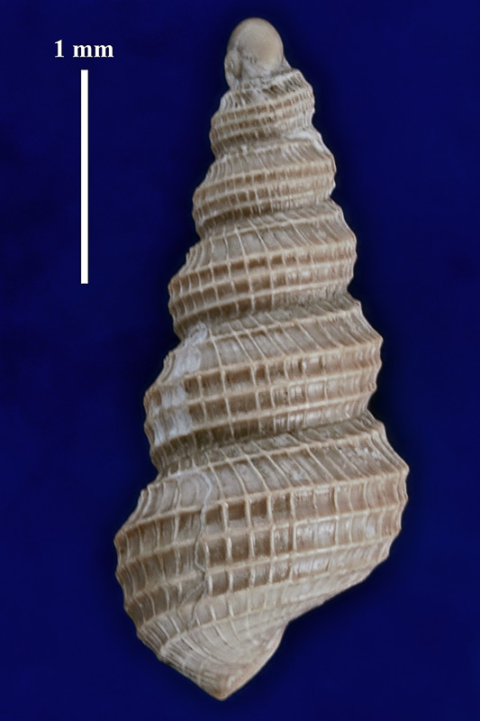 Размеры. Высота раковины около 3,2 мм. Длина масштабного отрезка равна 1 мм.