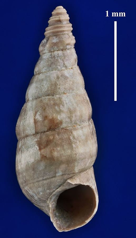 Размеры. Высота раковины около 2,84 мм. Длина масштабного отрезка равна 1 мм.