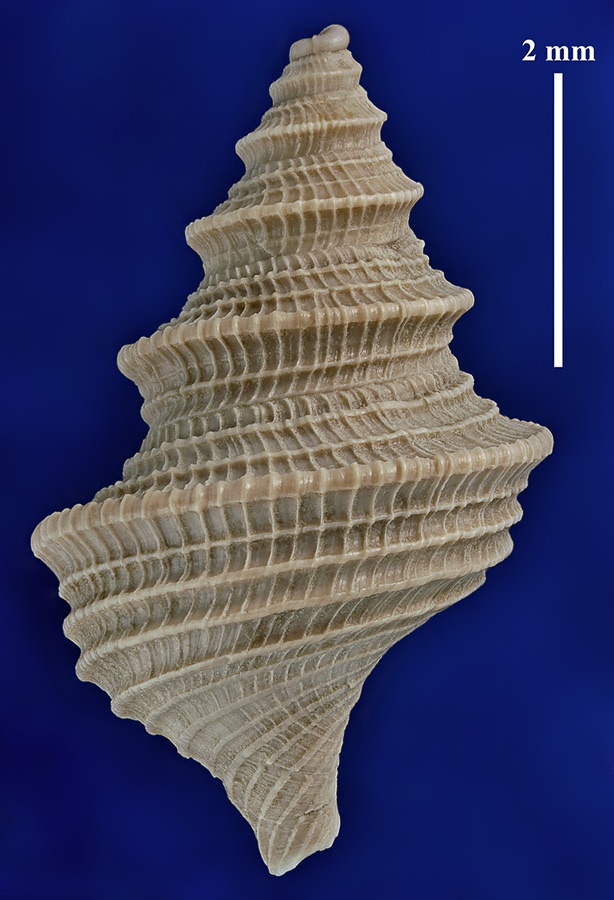 Размеры. Высота раковины около 5,8 мм. Длина масштабного отрезка равна 2 мм.