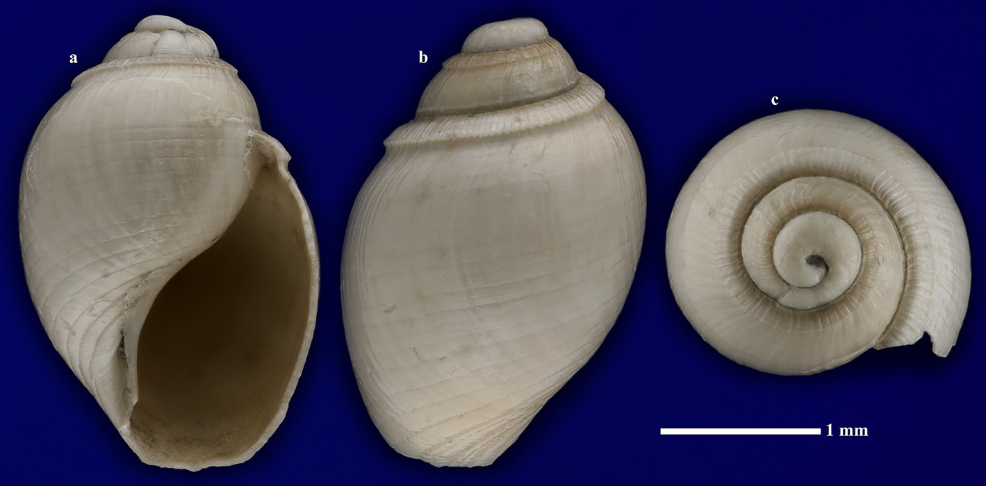 Размеры. Высота раковины около 2,85 мм. Длина масштабного отрезка равна 1 мм.