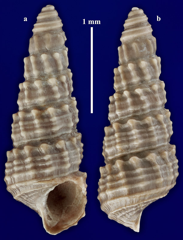 Размеры. Высота раковины около 2,68 мм. Длина масштабного отрезка равна 1 мм.