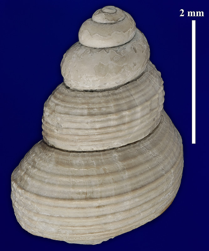 Размеры. Высота раковины около 4,3 мм. Длина масштабного отрезка равна 2 мм.