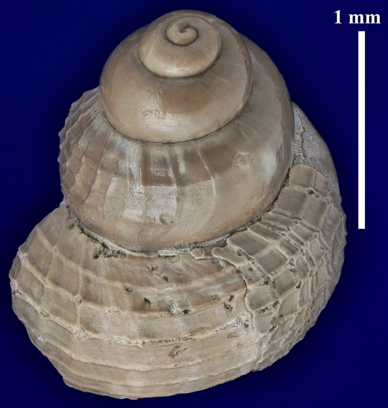 Размеры. Высота сохранившейся части раковины около 1,95 мм. Длина масштабного отрезка равна 1 мм.
