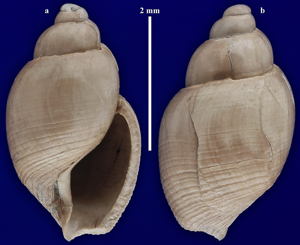 Размеры. Высота раковины около 3,55 мм. Длина масштабного отрезка равна 2 мм.