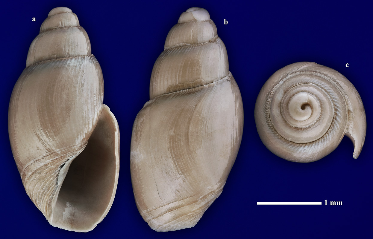 Размеры. Высота раковины около 3,5 мм. Длина масштабного отрезка равна 1 мм.