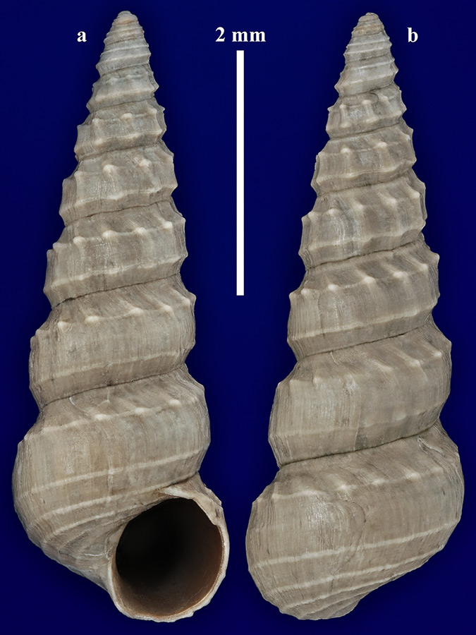 Размеры. Высота раковины около 5 мм. Длина масштабного отрезка равна 2 мм.