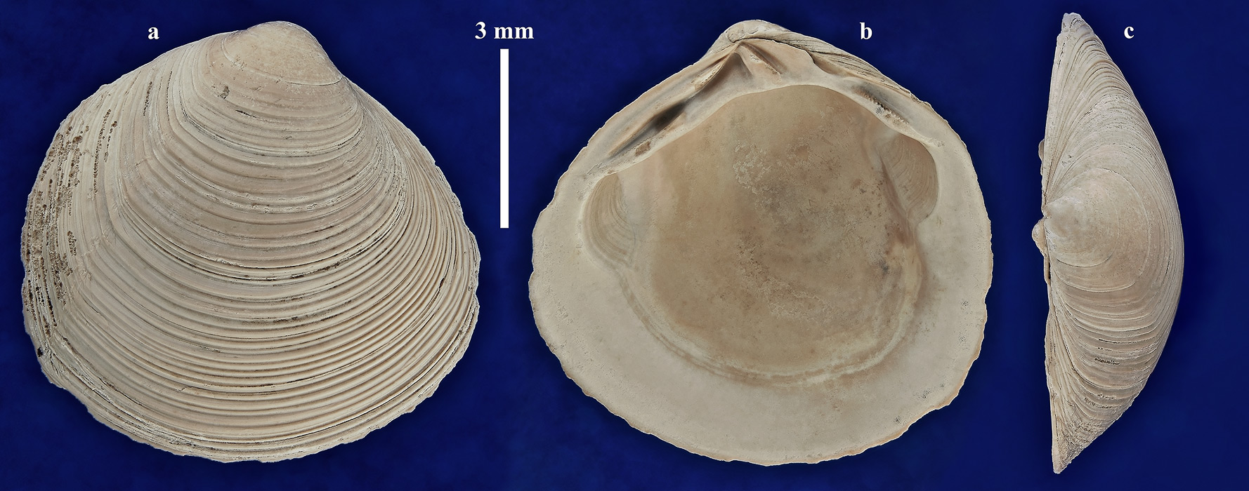 Длина створки около 7,7 мм; высота - около 7,45 мм; толщина (всей раковины) - около 4,8 мм.
