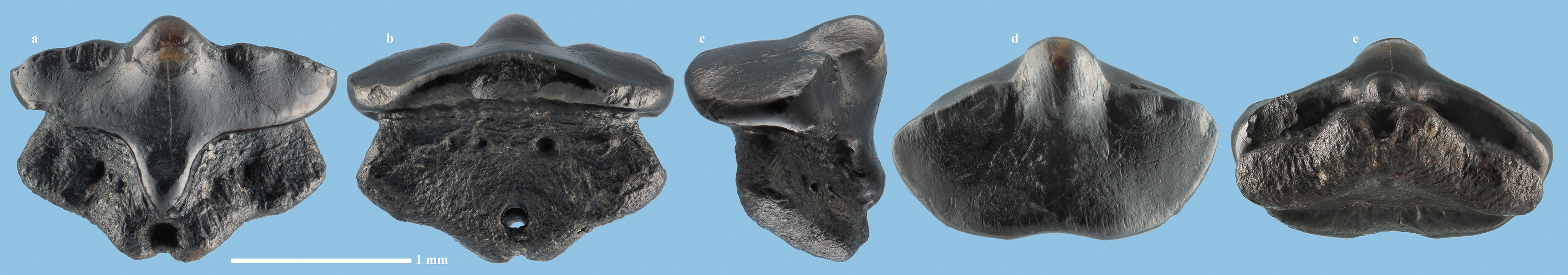 a - вид спереди; b - вид сзади; c - вид сбоку; d - вид сверху; e - вид снизу.
