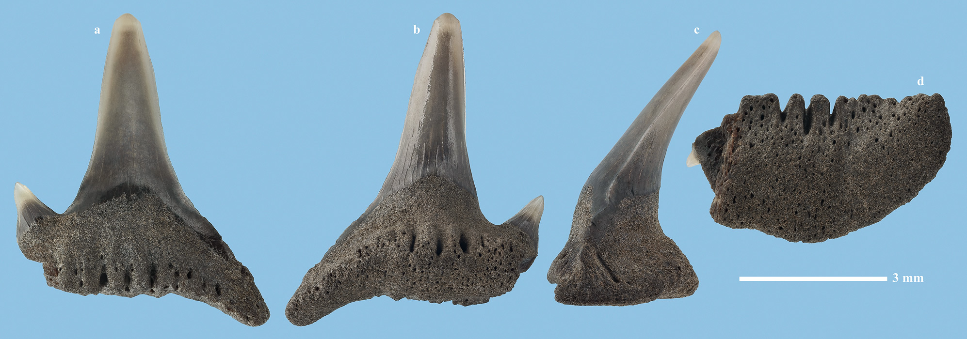 Размеры. Высота - около 5,6 мм; ширина (сохранившейся части) - около 5,2 мм; толщина - около 3 мм. Длина масштабного отрезка равна 3 мм.