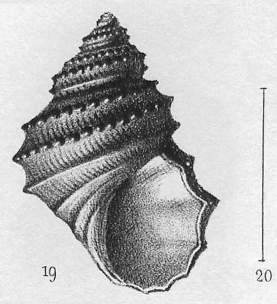 Раковина. 19) вид со стороны устья; 20) натуральная величина образца (только для оригинального оттиска).