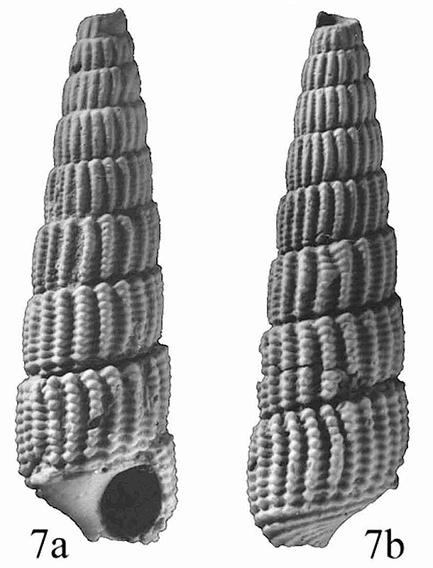 Раковина. 7 a: вид со стороны устья; 7 b: вид со стороны, противоположной устью.