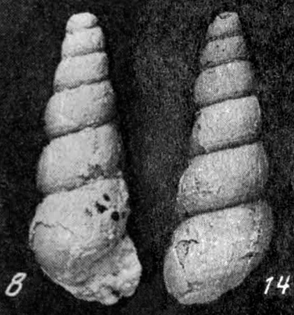 Табл. 26, фиг. 8 - вид со стороны устья; табл. 14, фиг. 14 - вид со стороны, противоположной устью.