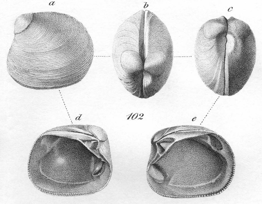 Изображение из:  Rоuillier, 1849, табл. М, фиг. 102 a-e  (скан с полиграфического оттиска; комп. обработка).