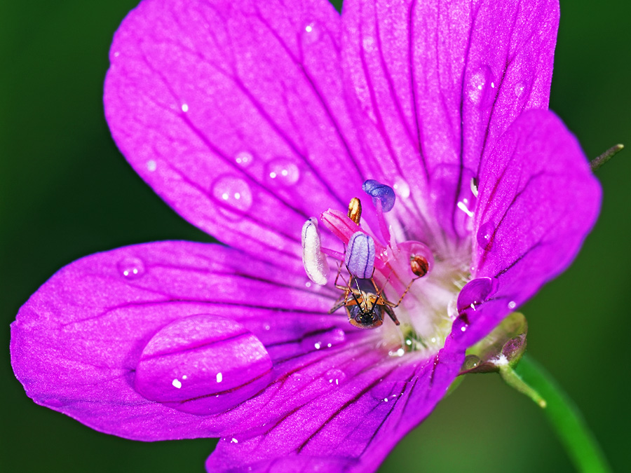 воды на лепестках: я присмотрелся к ним поближе и заметил крохотного "квартиранта" - клопа, прячущегося в цветке.