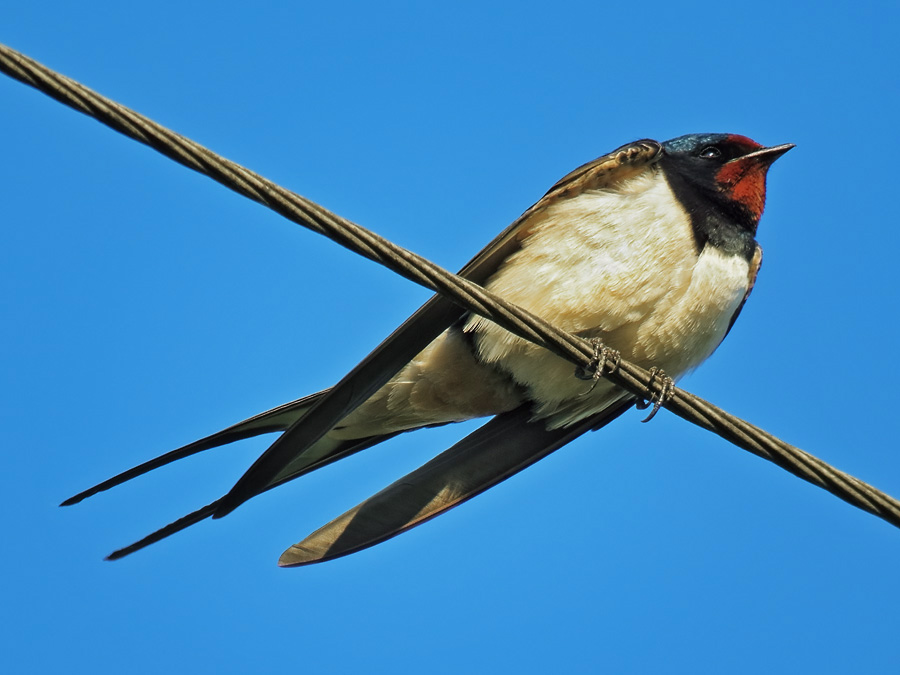 Комментарий. В тёплый солнечный день, проходя по тихой улице южного посёлка, деревни или станицы, обязательно посмотрите вверх, туда, где натянуты провода - и вы их обязательно увидите. Деревенские ласточки (Hirundo rustica) привыкли жить по соседству с людьми и ведут себя совершенно непринуждённо, отдыхая, оживлённо "беседуя", играя друг с дружкой буквально у нас над головами.