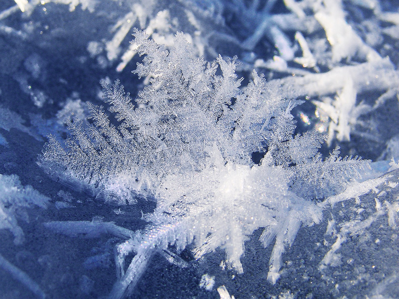 Комментарий. Причудливые ледяные кристаллы на снегу в морозный день.