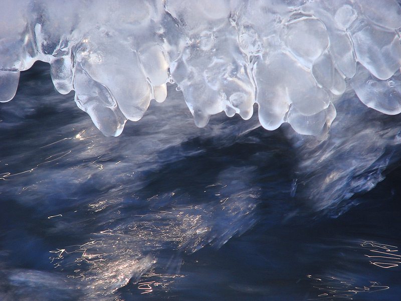 Остались лишь небольшие купели с бурлящей водой - там, где течение наиболее быстрое. Здесь вода и мороз создали удивительные ледяные скульптуры.