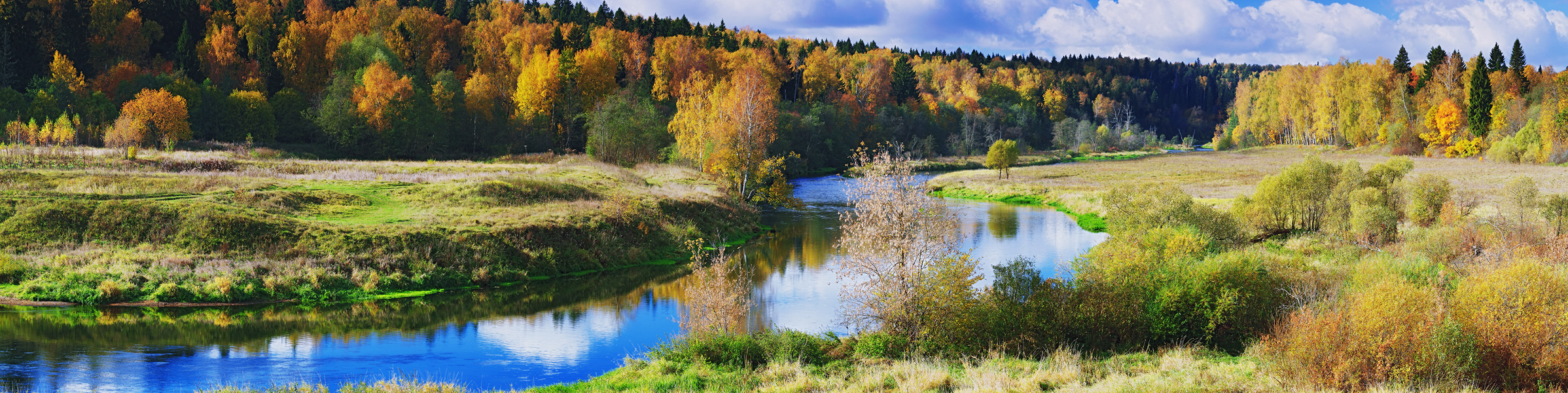 русла вдруг озаряется глубокой и чистой лазурью отразившихся в водах небес.