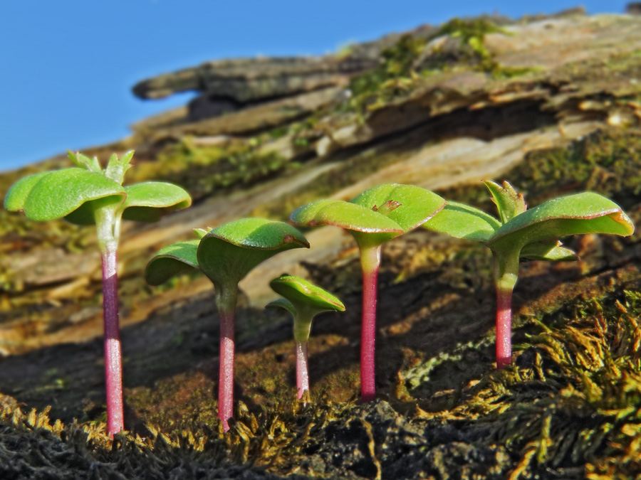 А в этот раз заметил молодые ростки с ярко-алыми стеблями, дружно тянущиеся к солнцу - будто волшебные бобы из сказки,