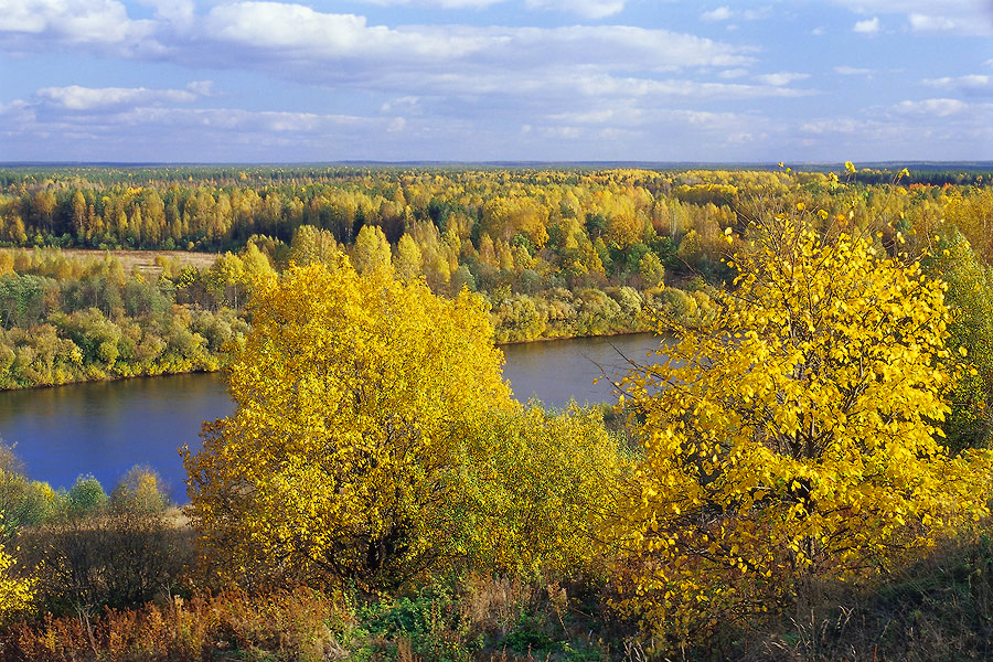 Среди осеннего разноцветья особенно нарядно выглядят вязы - их крупные, ярко-жёлтые листья горят восхитительным