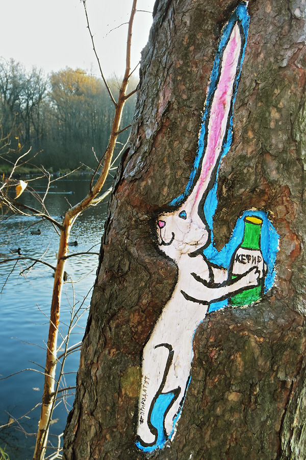Длинная, извилистая "проплешина" в древесной коре - только повод разгуляться необузданной фантазии настоящего художника!