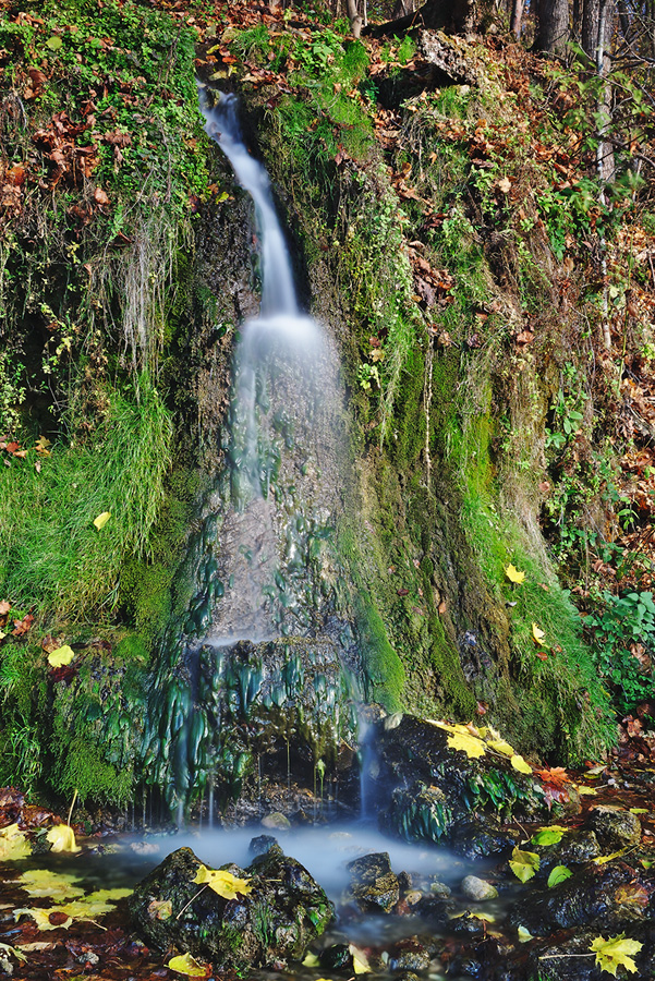 Особенно прекрасен водопад в пору золотой осени, когда склоны оврага усыпаны яркой разноцветной листвой растущих здесь