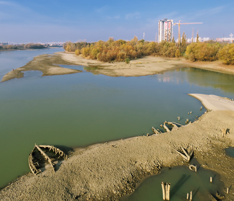 взору предстали обширные участки дна, обычно скрытые под толщей вод. Вдоль отступивших берегов тянутся длинные песчаные