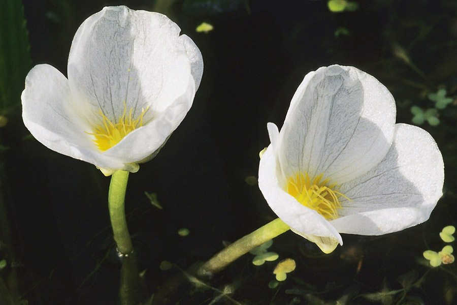 Комментарий. Цветы телореза алоэвидного (Stratiotes aloides L.) среди ряски в небольшом озерце в Виноградовской пойме.
