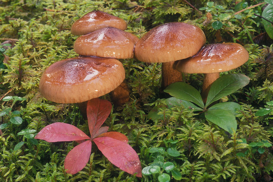 Моховые ковры подчас сплошь покрывают землю, упавшие стволы и корни деревьев под пологом тайги. Из этого безбрежного моря мха отдельными островками пробивается брусника, костяника, стелятся плауны. Вот, словно ниоткуда появилась семейка грибов. Рядом розеточки листьев седмичника (Trientalis sp.), одна из которых уже успела окраситься в ярко-алый наряд, чувствуя приближения ранней таёжной осени.