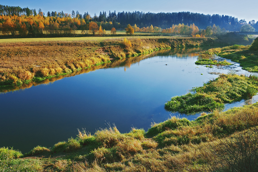Мне довелось побывать здесь погожим осенним вечером, когда свет заходящего Солнца наполняет сиянием золотую листву берёз,
