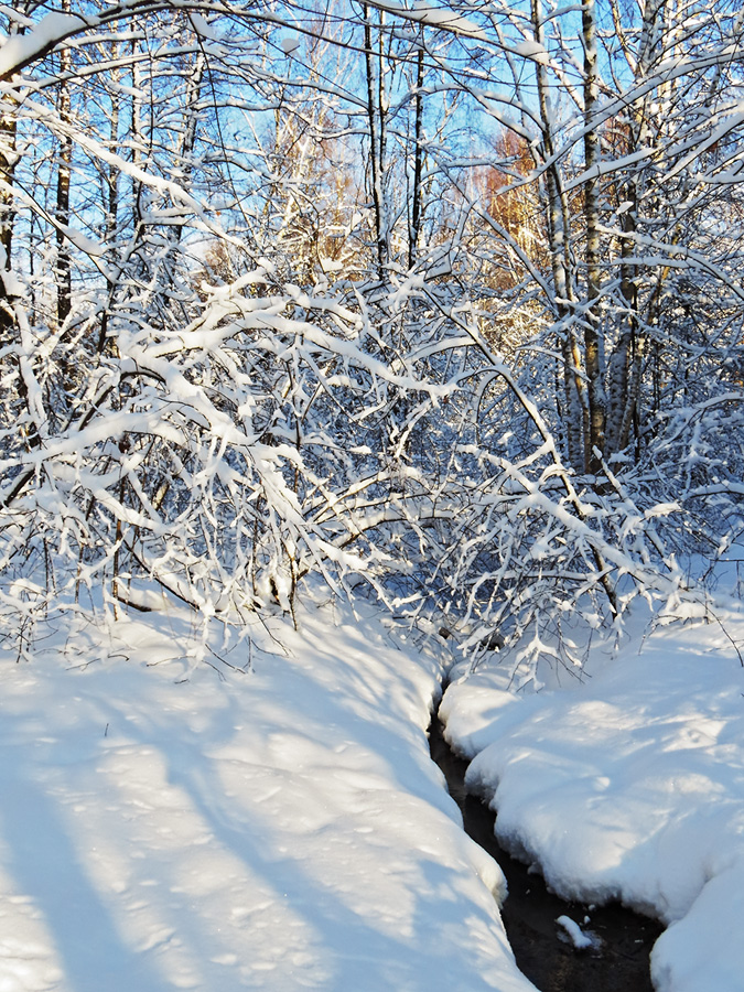 После обильного снегопада, украсившего ветви деревьев пышными шубками, в чистом голубом небе вдруг засияло