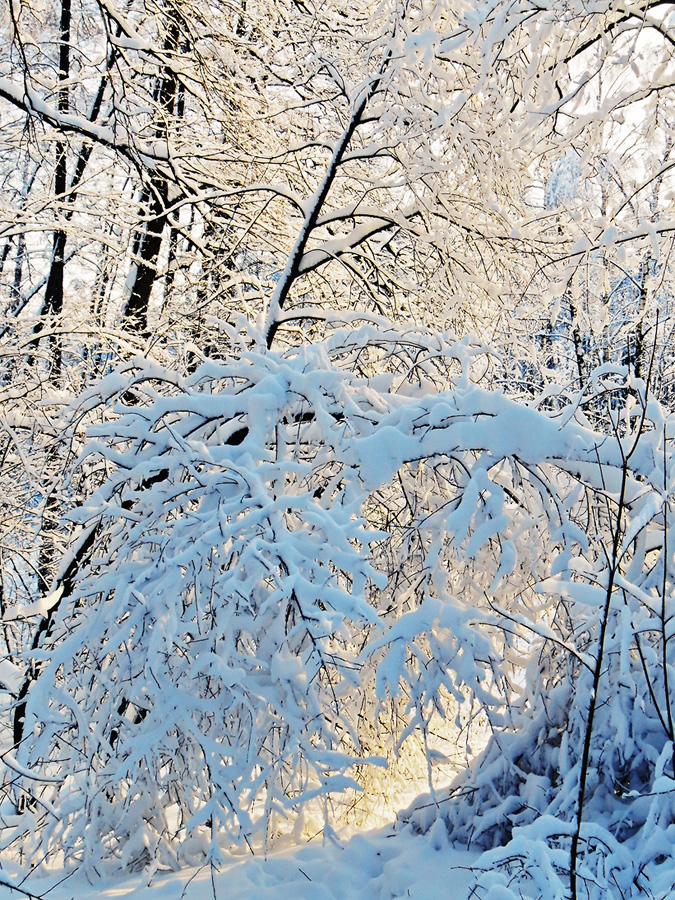 Но солнце вновь скрылось за тучами, и лес вокруг стал холодным, сумрачным и серым и, как ему и положено зимой. Яркое и