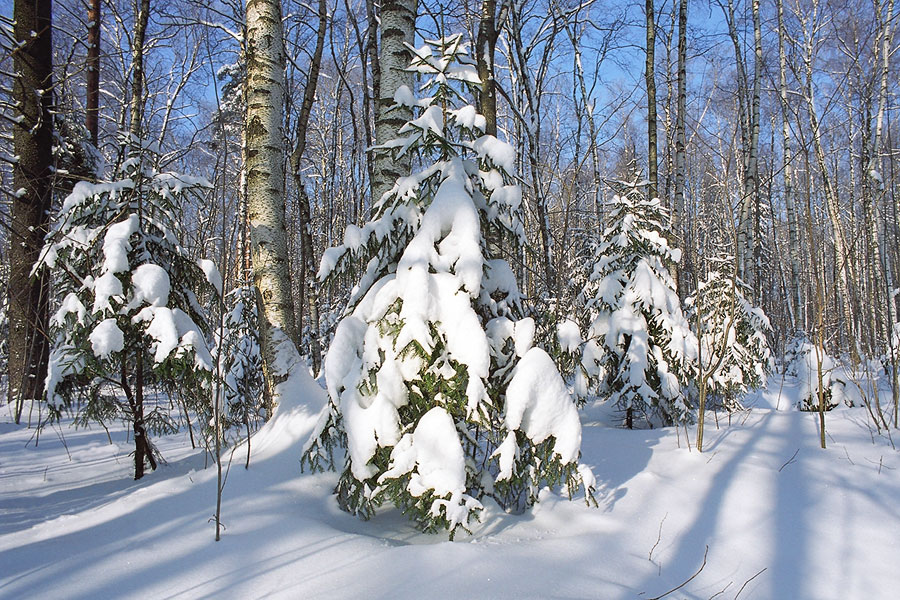Зимний лес в Подмосковье особенно красив на Севере и Северо-западе области, где так обильны снегопады,