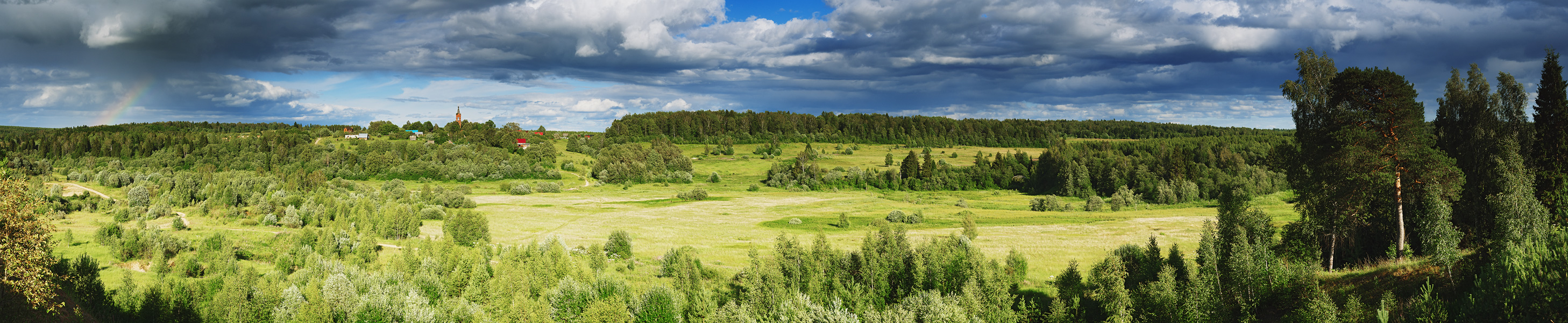 Перед нами - широкая долина, где среди лугов протекает небольшая речка Волгуша, прячущаяся, петляющая в ивовых зарослях. За