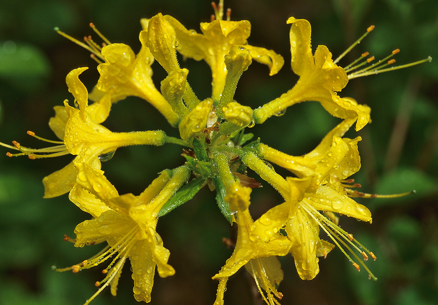 или азалия понтийская (Rhododendron luteum Sweet). Цветение столь дружное и яркое, что иногда целые склоны оврагов кажутся