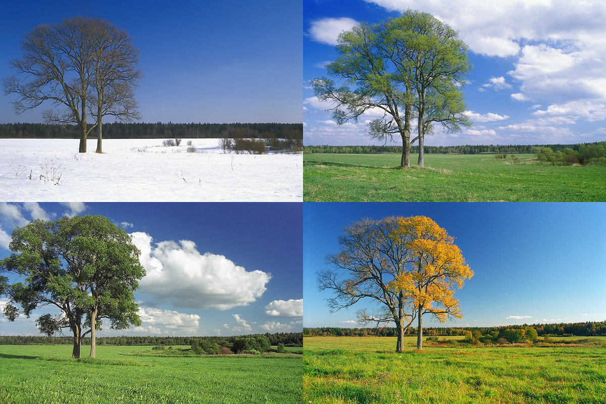 Зима, весна, лето и осень. Смена времён года, запечатлённая в одном и том же месте - в урочище Терехово,