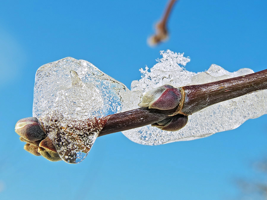 веточках клёна, ещё скованных зимней стужей, уже по-весеннему набухают почки, как бы говоря нам, что не вечна власть