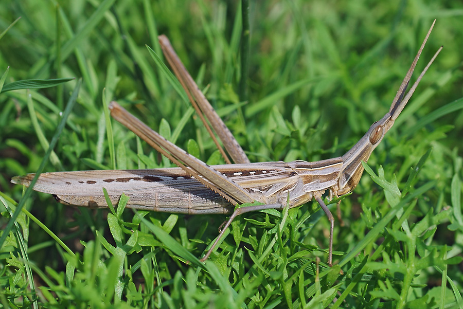 Также, как и на предыдущем фото, пришлось осторожно спугнуть насекомое, чтобы оно перепрыгнуло на сочную зелёную травку.