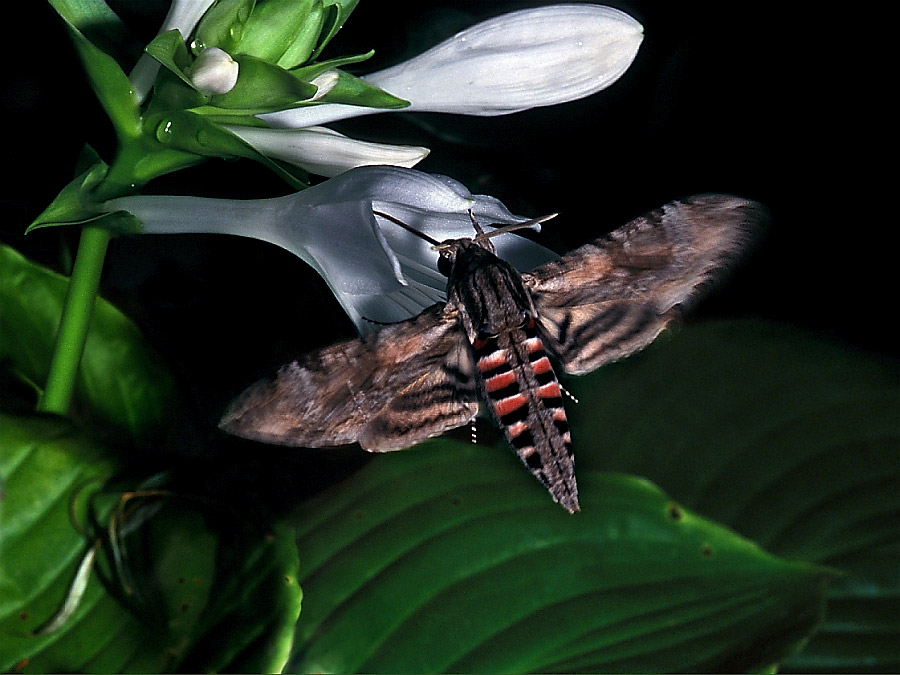 очень крупных и ярко окрашенных бабочек - вьюнковых бражников. С характерным звуком