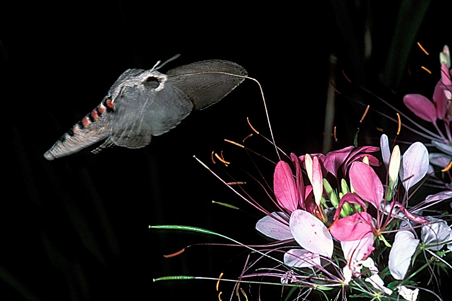 десяти сантиметров хоботок. Прилетая кормиться в сумерках на клумбы цветов, эти крупные бабочки