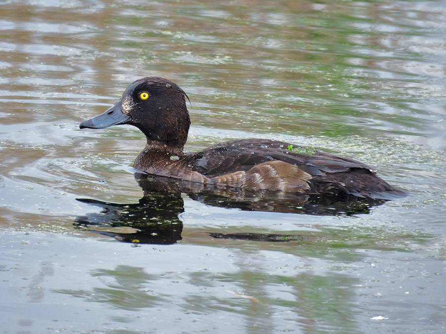 Комментарий. Хохлатая чернеть (Aythya fuligula) - птица из семейства утиных (Anatidae), отряда гусеобразных (Anseriformes). Самка.