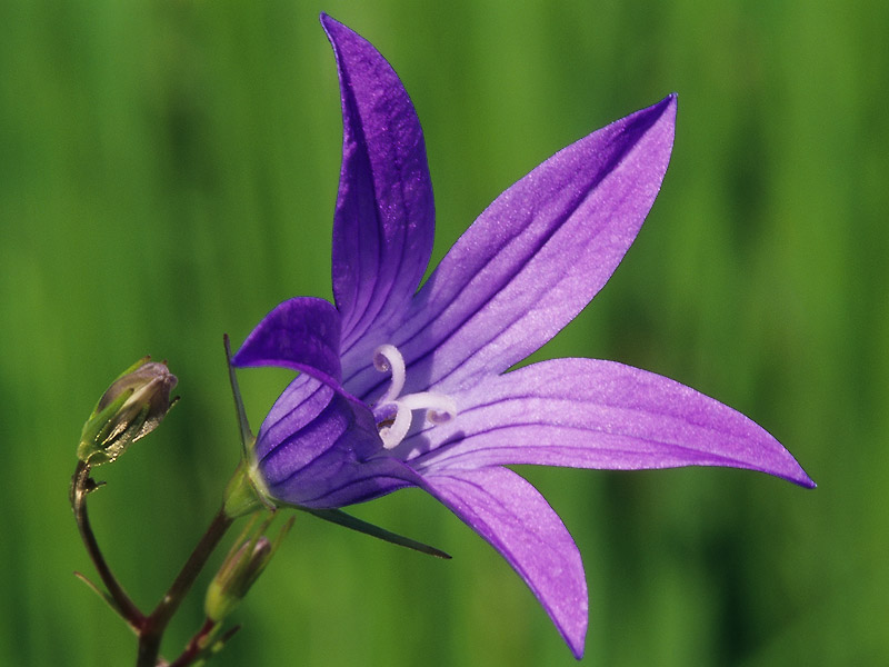Комментарий. Цветок колокольчика раскидистого (Campanula patula) на лесной поляне.